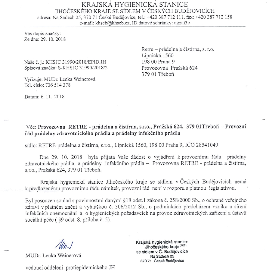 Veškeré vyprané prádlo splňuje přísné hygienické normy pro praní zdravotnického prádla.